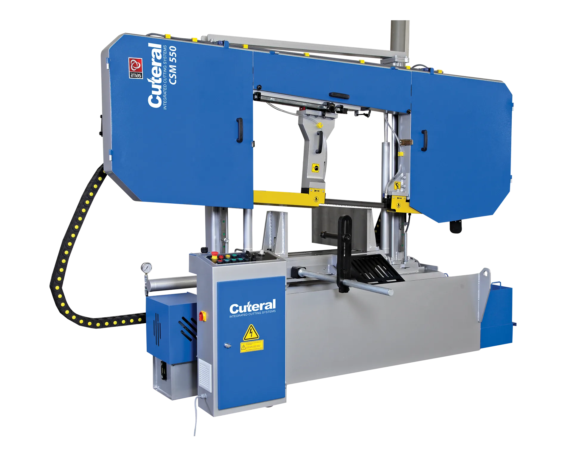 - Utilizes long-lasting band saw blades.